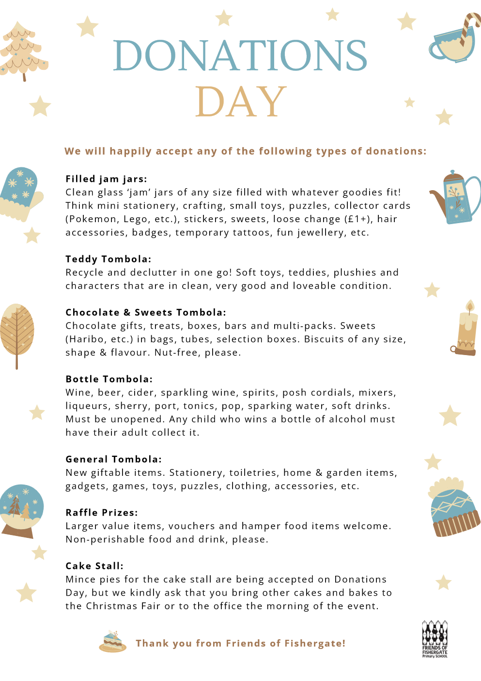 3/12/25 is Donations Day for the FoF Christmas Fair!