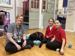 Huge woofs of thanks to two of the lovely pupils for sitting with me. They were top-quality humans: excellent at stroking, very good at keeping me company, and 10/10 for helping me stay calm even when I wanted to sniff everything.Bodhi